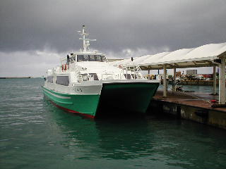 予定通り835初の客船で伊良部島へ渡った。400円也。45km/hと、なかなか早い。(GPS計測)乗船時間は15分程か。
