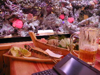 熱帯魚水槽の隣りでぐびぐび