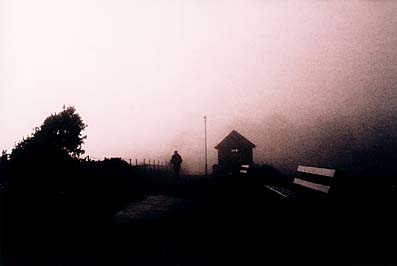 Does here freeze at the end his footstep? The sound of the fog is left.