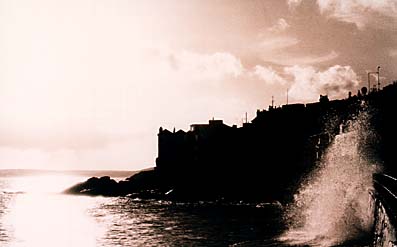 The wave approaches far quietly toward here. Air without the sound flows and the sea explodes calmly momentarily finally.