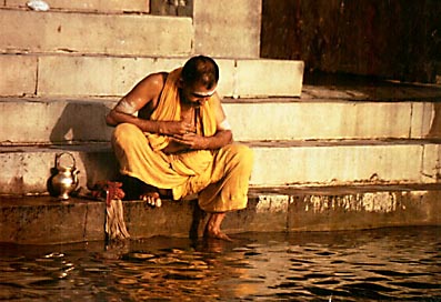 A pilgrim at the shores of the Ganges (taken in Varanasi)