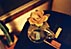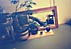 I put a school desk and a chair in the center of the small space, a thick book with 162 photographs on the deck, and a postcard-size image on the wall in front of the desk, ...to make the gallery space a "dialogue box" for each visitor.