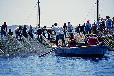 The chief fisherman's shout put these 80 guys together to pull the net all together.