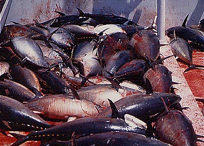 The Mediterranean tuna fish pulled up. A big one has the same length as a man.