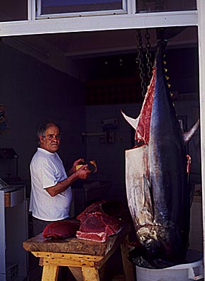 The fishmonger in the island. The main attraction here is a whole tuna fish. Frankly this is all what he sells.