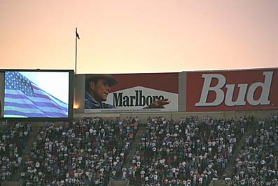 billing amonst the billboards at Giants Stadium. A beer is better than