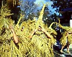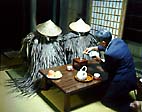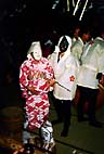 芳:いや、全然苦労だと思わなかった。昔のことだから寝台車なんて無いからね、三等車に乗っていってね、向こうに着いても宿屋なんてないし祭りは徹夜でやるから、40時間くらい寝ないでいたこともあったな。祭りというのは、その場所を離れたらダメだから。そうしていると村の人が気の毒に思ったのか、ちょっとうちのところに来て寝ないかとか言ってくれるんだ。それでね、まだ最初のうちは泊まってしまったりしたんだけれど、そうしているうちに良いところが終わってしまって、また来年行かなければならなくなる。そうこうしているうちに学んだことは、なんとしてもその場所は離れないようにする事。そして早くその場所に着いて、決して迷惑にならないようにしている事。
