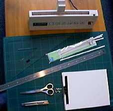 これが写真制作セット。上の四角いのが卓上製本機「ホームとじ太くん」