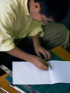 写真の大きさに合わせて表紙、中表紙を切る。少し大きめにすることをお忘れなく