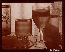 卵白と薬品を 流動性を良くするために1時間程撹拌しメレンゲ状にしたものを一晩寝かせ、ろ過したものを更に最低1週間、冷暗所で寝かせます。プリントサイズより一回り大きい紙[*1]を用意し、両短辺を5mm程度折り、つまみを作ります。卵白液をバットにあけ気泡、埃を楊枝などですべて取り除き、紙をそっと卵白に浮かせます。3分程経ったら端をつまんで、持ち上げ、吊して乾燥させます。[*2]このとき出来てしまった気泡は楊枝や紙の角を使って取り除き下辺に溜まる余分な卵白をふき取ります。ここまでは明室で作業可能です。