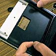 裏には三脚用のネジ穴。かまぼこの板に雌ネジを埋め込んだものを貼ってあるのだ。