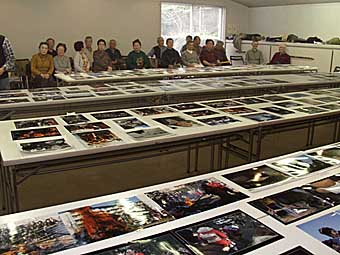 (1)神奈川県のある写真クラブの月例会、この月例では組写真、単写真、ネーチャーと三部門毎月40人以上の参加者が一部門三点まで出品できるから、テーブル上には、300点以上の写真作品がならぶ。