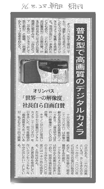 (1)オリンパスC−800L発表の記事が載った朝日新聞