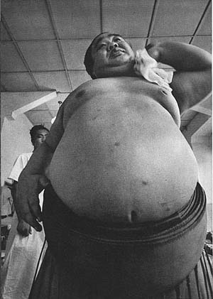 出来上がった写真はご覧の通りで、太鼓腹が誇張されている。当然頭に近づいて写すと頭でっかちのカリカチュア化された写真が撮れる。この週刊朝日のグラビアは評判が良かった。日本光学の人からも、こんなレンズの使い方があったのですかと感心された。
