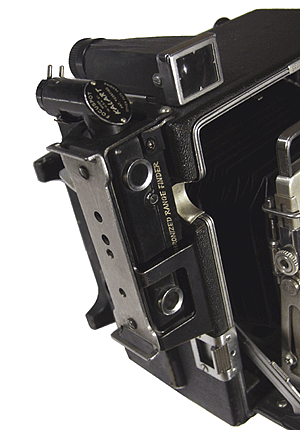 写真2 1947年以降に発売されたPACEMAKER SPEED GRAPHIC4×5にはカラート距離計がついていた。これは標準の128ミリ/135ミリ・レンズに連動した。
