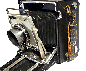 ファインダーのことを取り上げると、このカメラは大型カメラとして当然のように背面の焦点板(ピントグラス)を持っている。昔の大型カメラにはファインダー付きのカメラはほとんどなかった。三脚に取り付けてピントグラスを覘き焦点を合わせ、フレーミングをしてからシャッターをセットしフィルムを装填し撮影した。