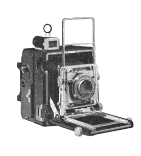 はじめカメラにはファインダーはついていなかった。レンズのキャップをはずしピントグラスに逆さに映る画像を見てフレーミングし焦点を合わせ、改めてフィルムホルダーをカメラに取り付けて撮影した。ハンドカメラが出来てファインダーがカメラにとりつけられた。目の位置を決め、あとは金属枠をファインダーとして使用するようになる。