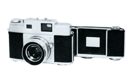 一台のカメラで白黒フィルムとカラーフィルムを二つのマガジンに分けて、必要に応じて付けかえて撮影するというアイデアだった。これはいささかカメラマンの要求を先取りしすぎた感があった。アマチュアカメラマンはまだカラー写真を撮っていなかった。