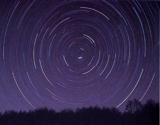 6月のことだが、新宿へ竹内俊信さんのタスマニアの写真展を見に行った。タスマニアで夏だと言うのに雪に降られ、凍えそうになって撮影したとキャプションがついた写真が展示されていて、寒いという実感が画面から伝わってくるようで引きつけられた。この雪の作品のそばに日周運動の写真が出ていた。星の写真である。日周運動というのは地球が西から東へ自転していることから、恒星は東から西へむかって動くように見える天体の運動である。わかりやすく言うと地球が自転するために、天体が毎日東から西に向かって1日の周期で循環するように見える現象のことである。