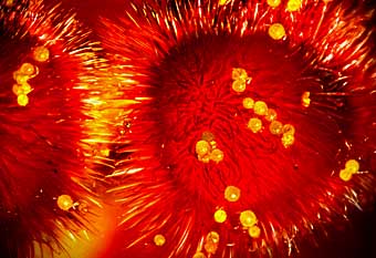 飯能写真展という催しが埼玉県飯能市で毎年あって、数年つづけて審査を引き受けているが、昨年上位に入賞した作品、これは飯能の山から東京隅田川の花火を撮影した写真で、素晴らしい作品だった。表彰式のときこの作者が90才を過ぎている人だったのにはおどろいた。
